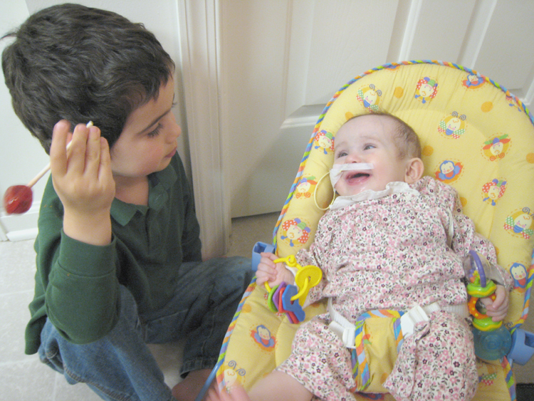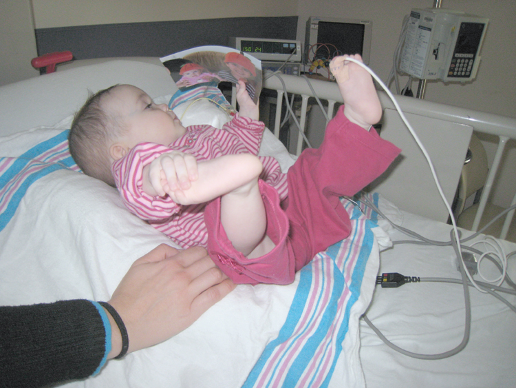 We had a serious scare on Feb. 15. Whereas previous apneic episodes had occurred at night, Josephine experienced one in the middle of the day during naptime. By chance—the monitor was not set up for daytime alerts—we discovered her mid-nap, a pronounced shade of blue. We quickly administered the oxygen pump and seconds later were relieved to have her back in our arms as a smiling child. Nonetheless, we were reminded that she was living on borrowed time. We called nearby relatives for moral support and were comforted by their visit. We sent our son home with his cousins for a sleepover out of fear that Josephine would not make it through the night.